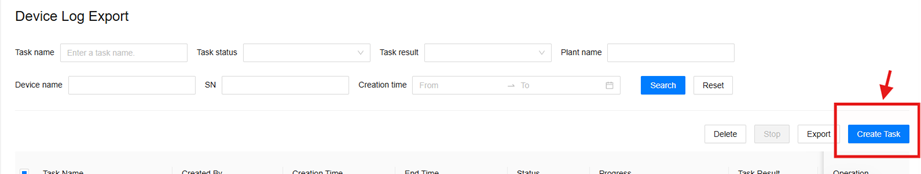 Consejo: En la barra “Plant” puedes escribir el nombre de la planta para filtrar los equipos asociados. Además, en la columna “Device Name” podrás verificar el tipo de dispositivo (inversor, batería, medidor, etc.).