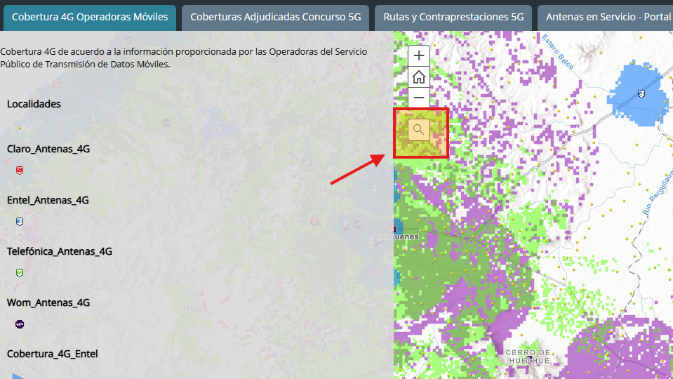 Se encontrarán con la siguiente pagina donde, distinguido por colores, reconocerán cual es el operador con mejor cobertura 4G en la zona donde se emplazará su proyecto.
