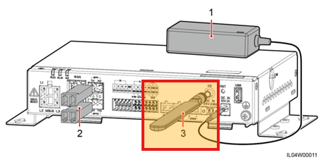 Ya instalada la antena, debemos conectarla al SmartLogger 4G, reemplazando la antena omnidireccional que ya viene incluida con el equipo, retirando esta y en su lugar, debe conectarse el cable coaxial con conector SMA previamente preparado.