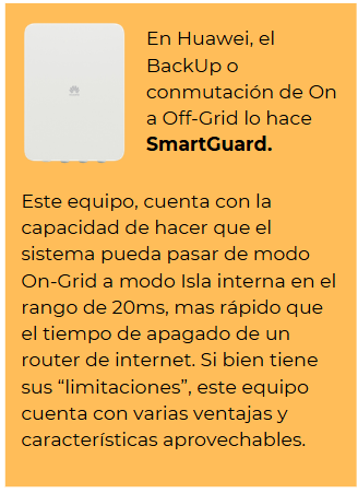 Si lo aplicamos de manera correcta, este sería el modo isla interna, el cual tiene la capacidad de (con la ayuda de una función o equipo BackUp) pasar de modo On-Grid a modo Off-Grid de manera forzada ante la ausencia de referencia de Red, y pudiendo pasar nuevamente a modo On-Grid una vez recuperada la Red.