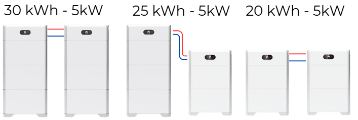 La mayoría de los inversores pueden tolerar 2 torres de baterías conectadas en serie, pudiendo tener con esta versión de batería hasta 30 Kwh.